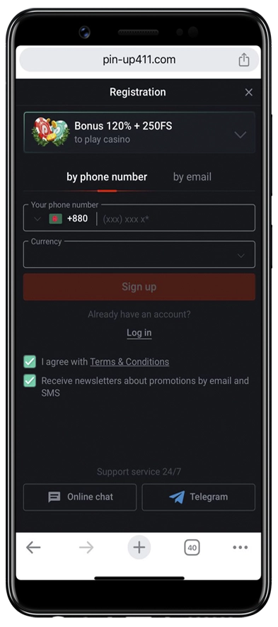 - Registering at Pin-Up App