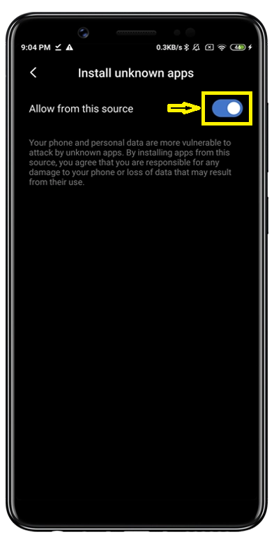 3. Allow downloads from unknown sources