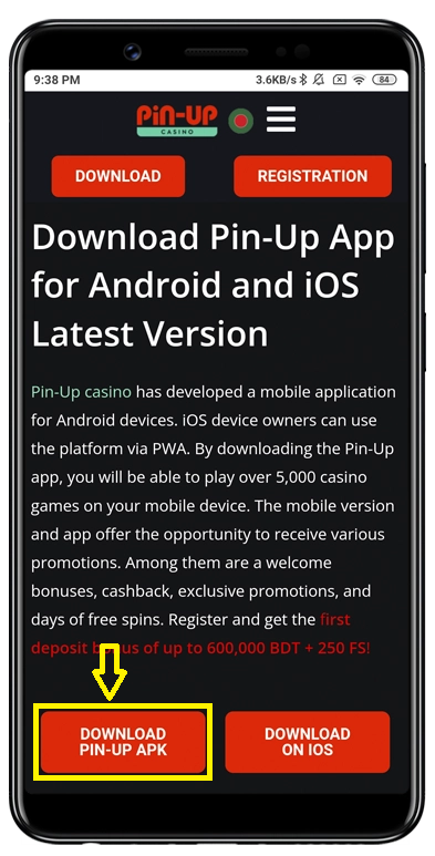 1. Click the button DOWNLOAD PIN-UP APK