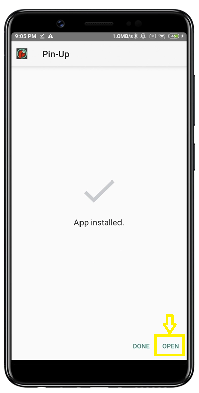 Once the APK is installed, you will see a corresponding notification, and the Pin-Up app icon will appear.